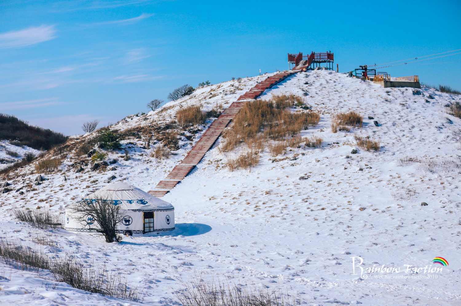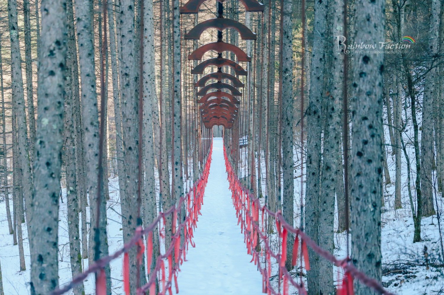 通往远方的吊桥像极了漫长的情路,和心爱的人一起走过,让人瞬间就忘记了冬日的寒冷。