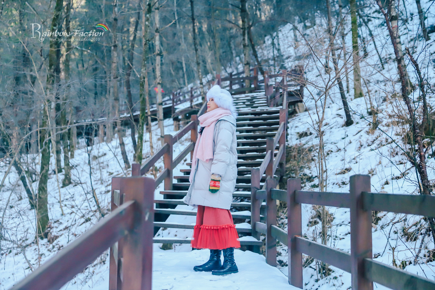 虽说爬山的栈道并不陡峭,可寒冬雪地,身着厚重的棉靴羽绒服,总感觉身体不由自主的笨拙起来。