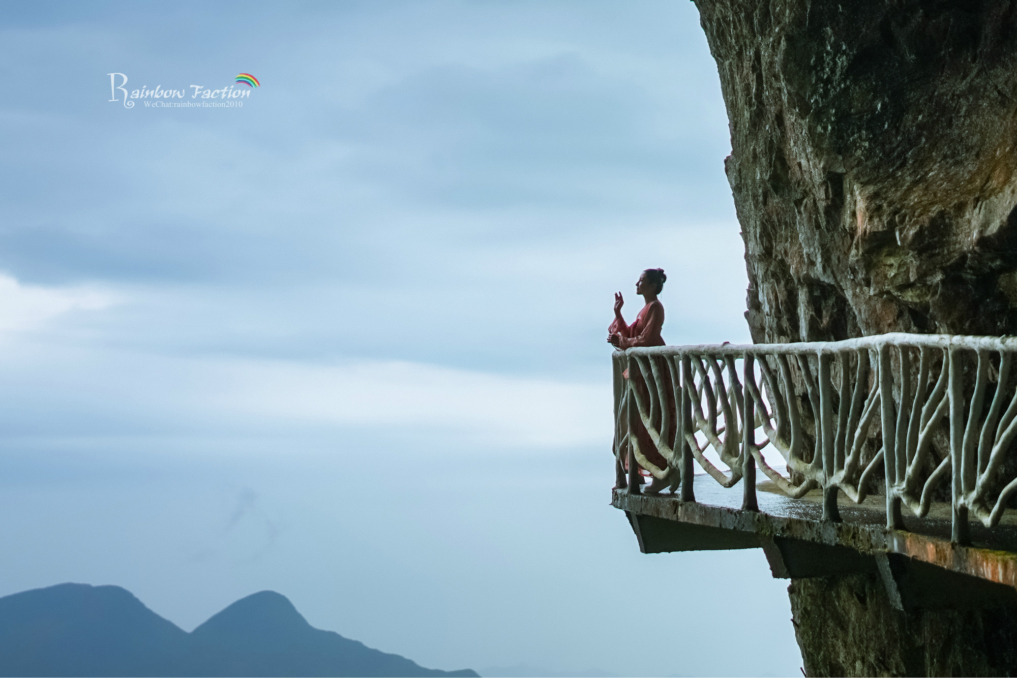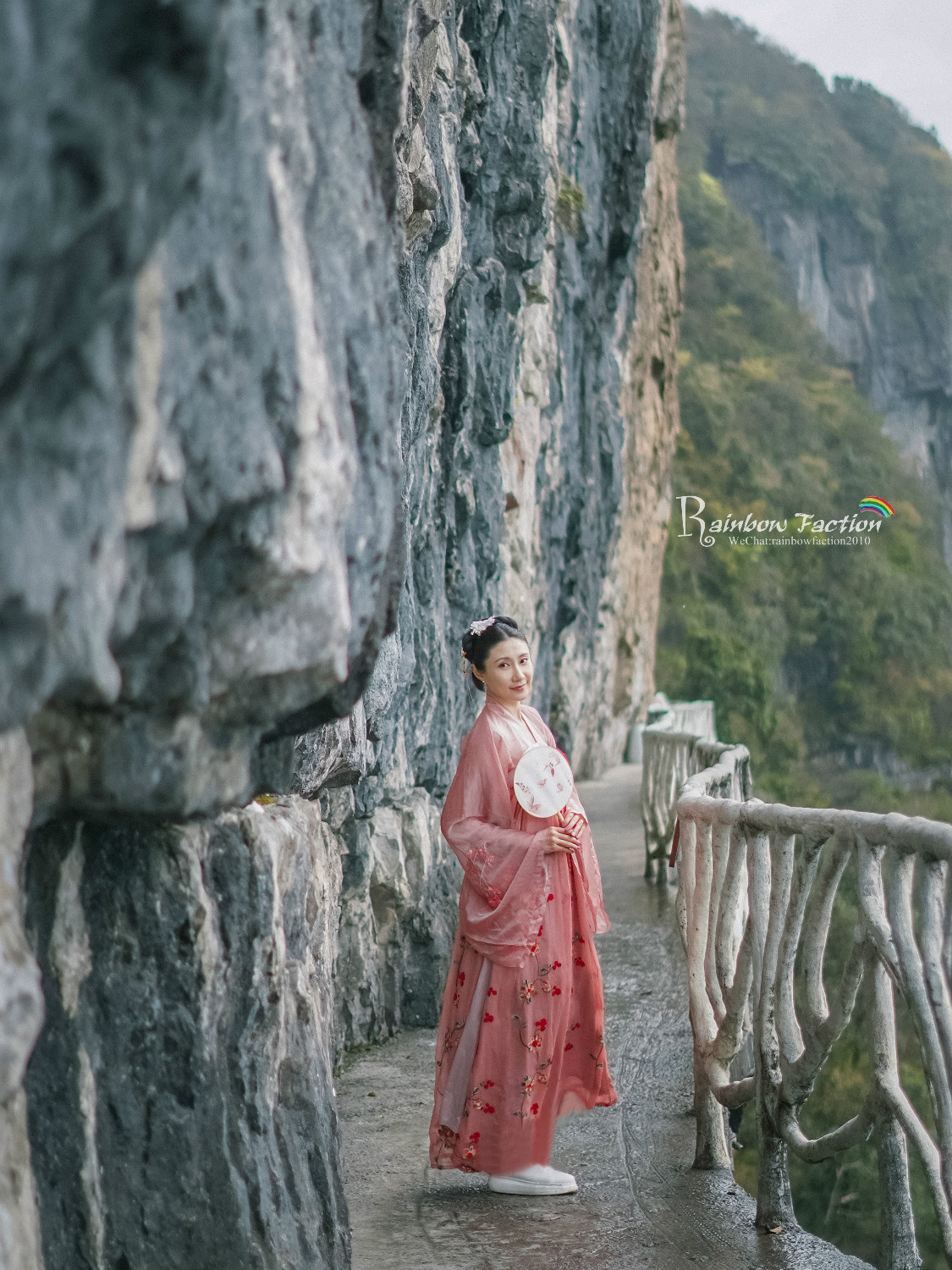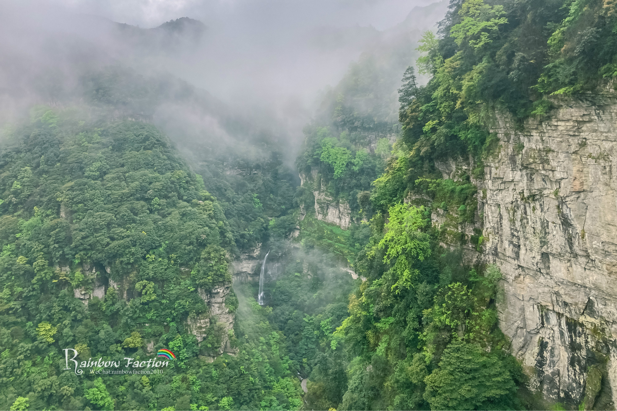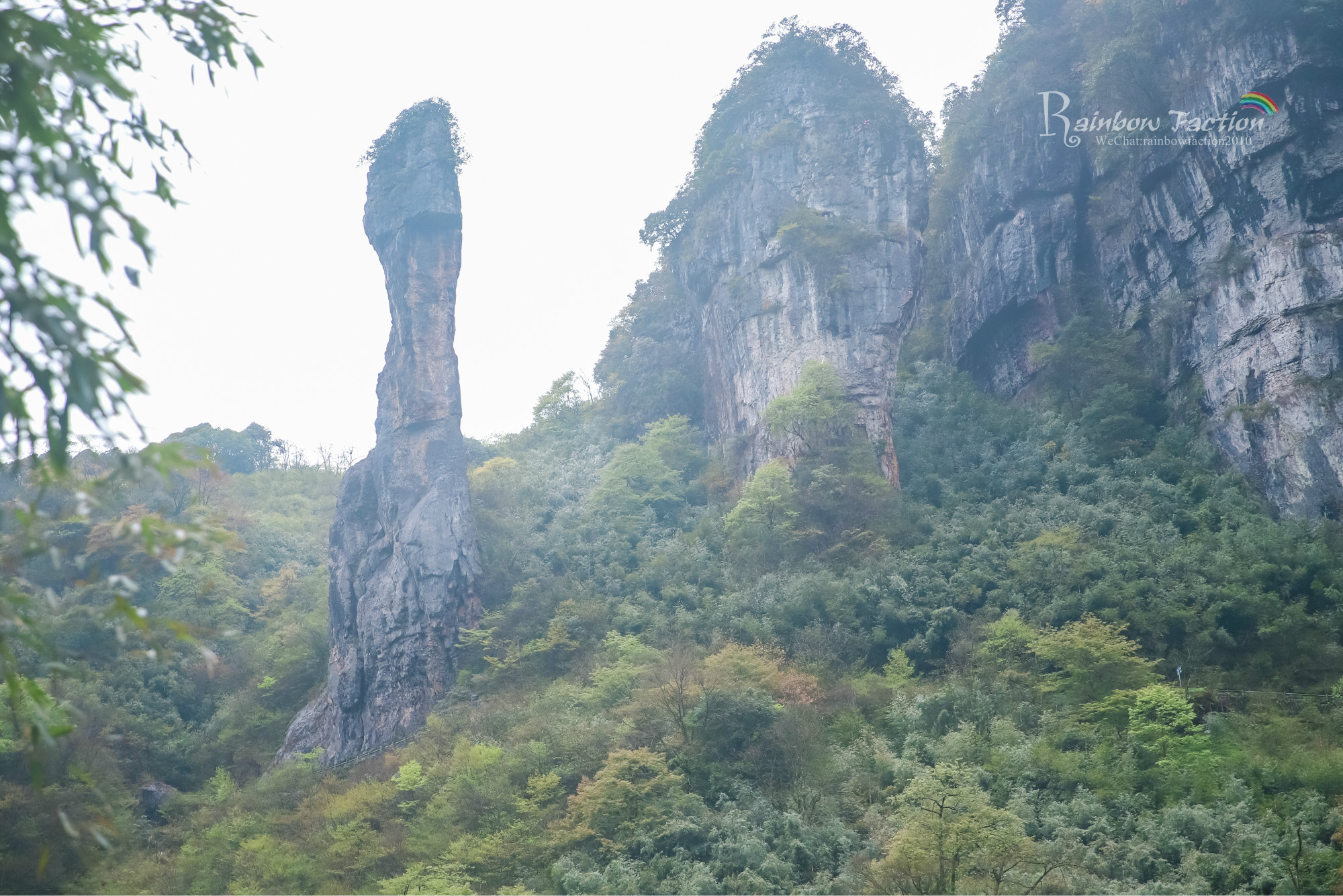 栈道离地面近百米,行走时如凌空微步,步步惊心。悬崖边还不时刮起阵阵“回旋风”,眼见着落叶被风从下至上吹起,不得不惊叹大自然的神奇。