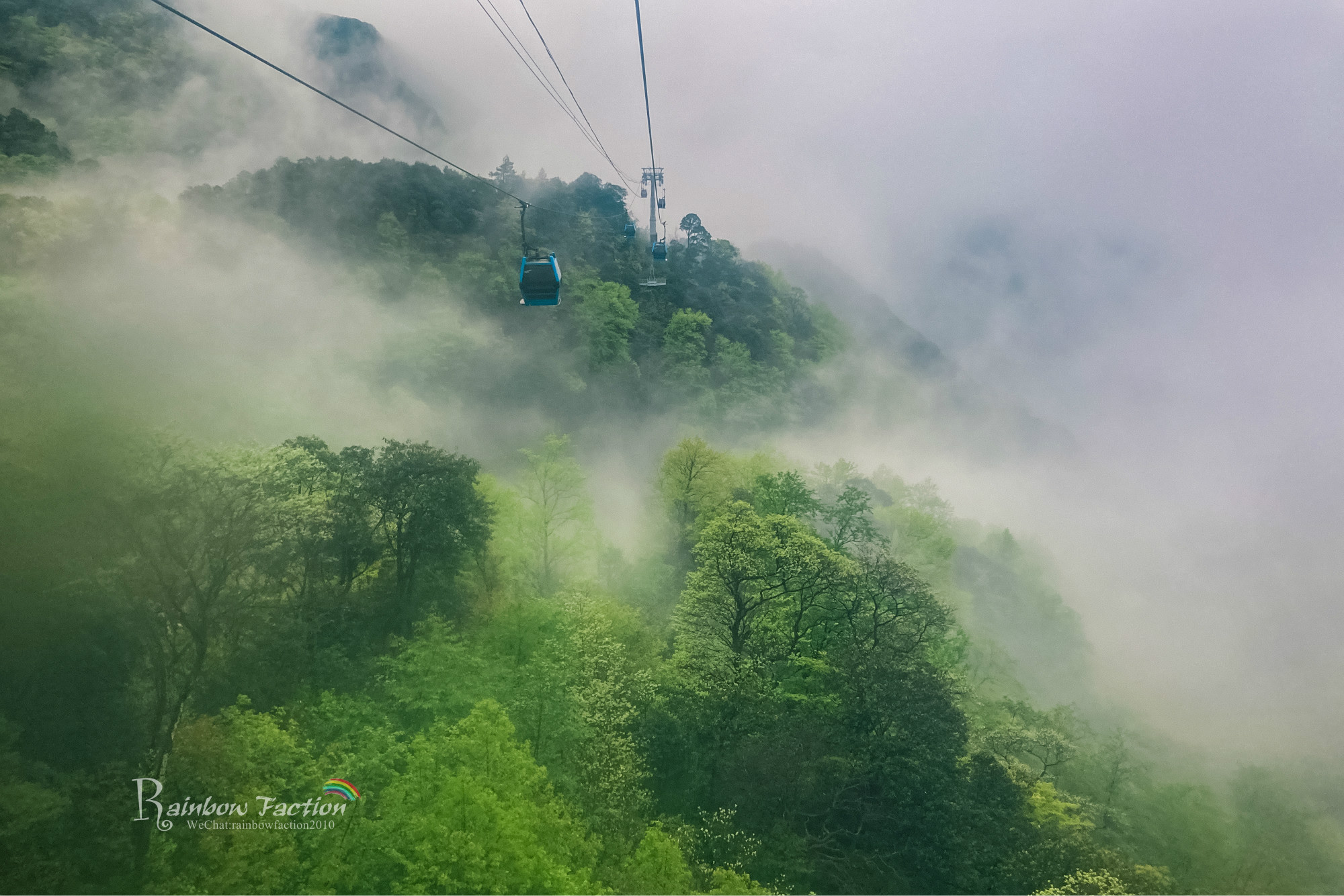 乘坐索道登山的旅途,就像是一次穿梭在云雾间的飞翔体验。坐在缆车里的我们,时而陷入迷雾不知所措,时而拨云见日豁然开朗。