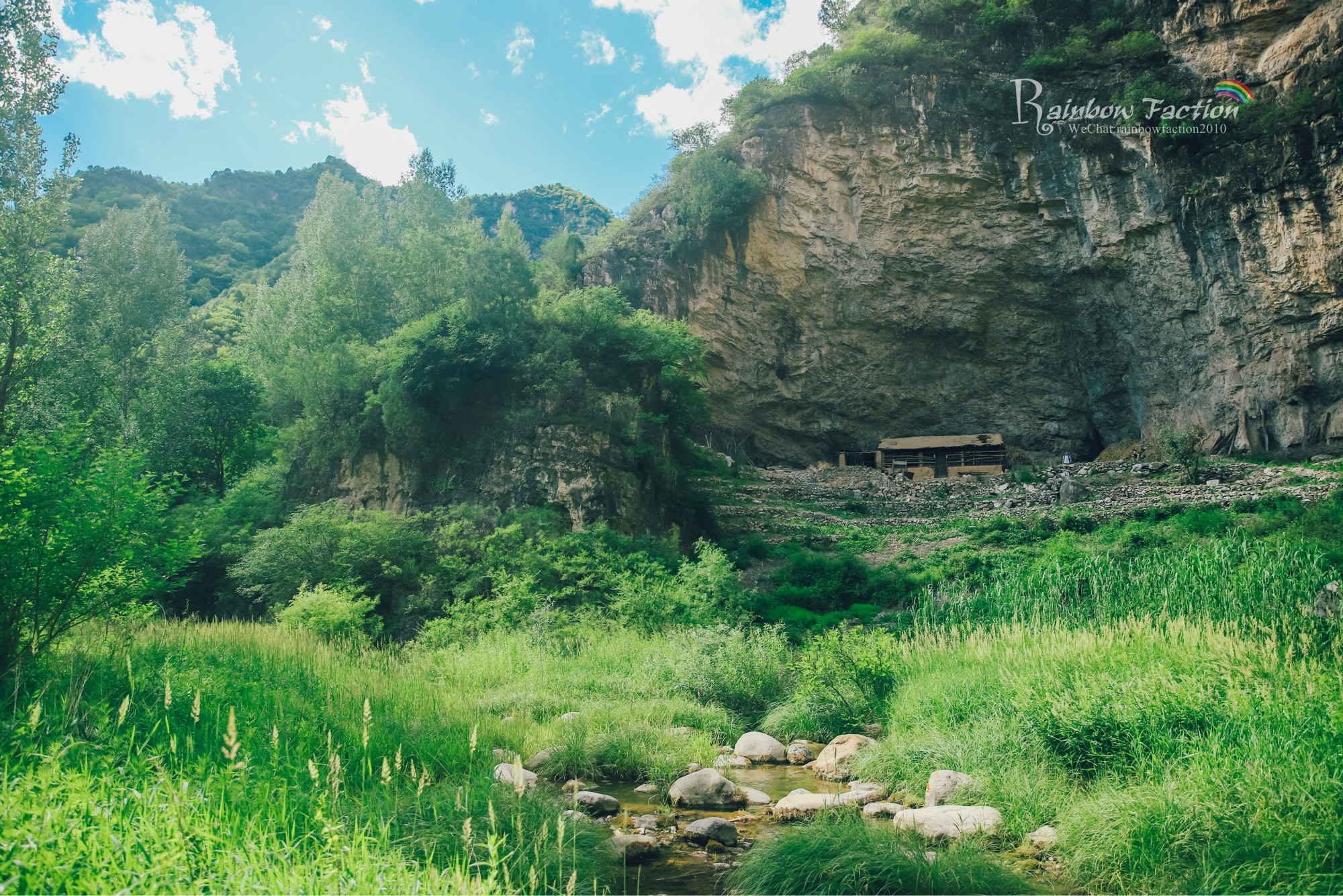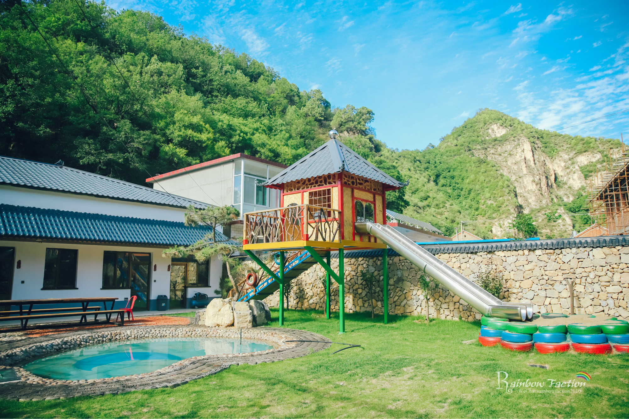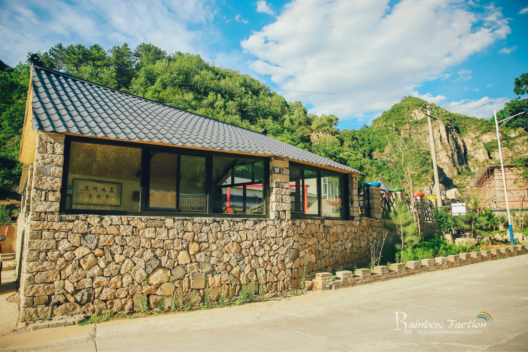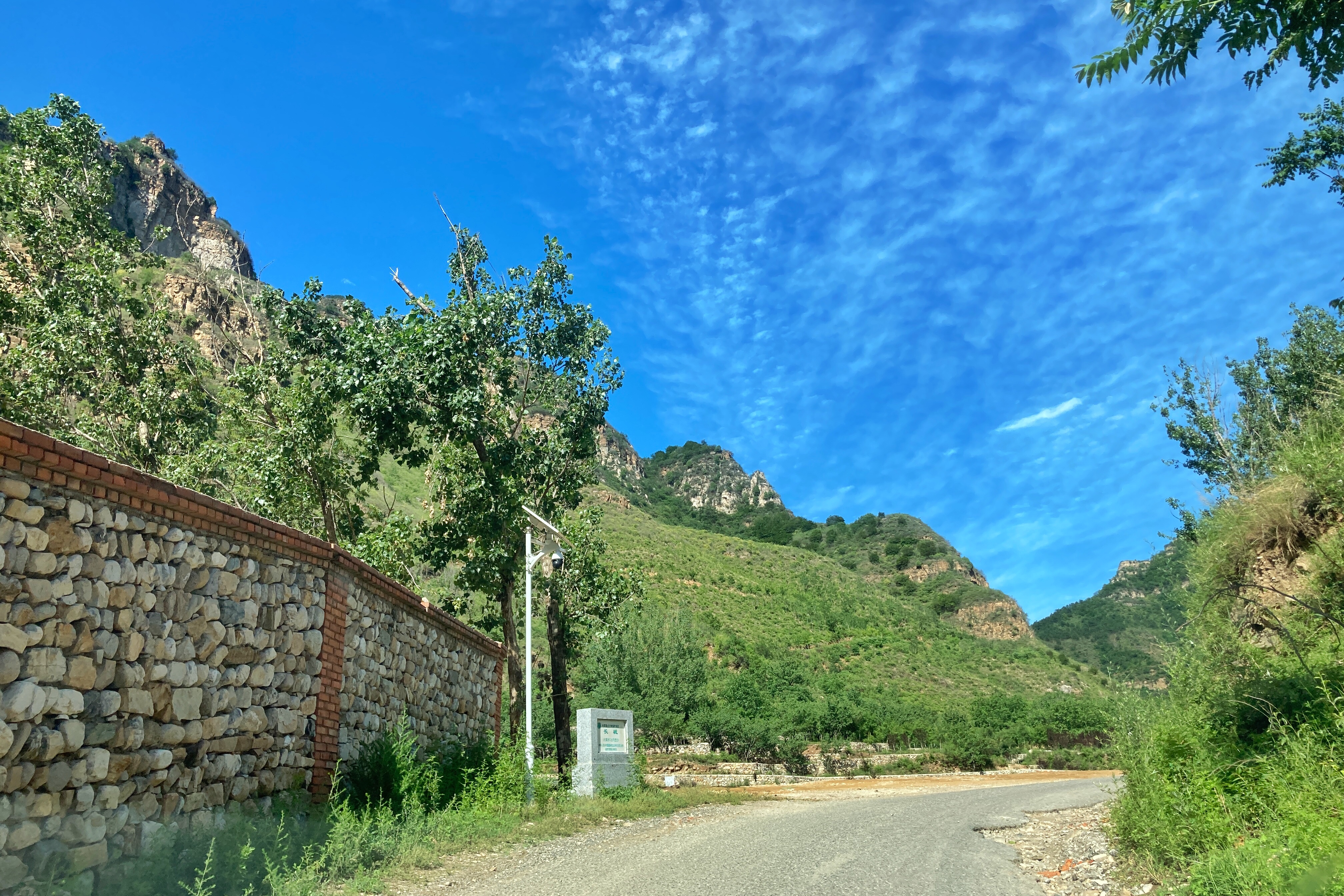 一路顺着大黄岩河北上,这是一条很美很美的路,路两旁有高耸的钻天杨、陡峭的山坡、若隐若现的长城和清澈见底的河流。绕过了满目青葱和山水迢迢,一路来到翻水泉村,就到了我们此行的目的地——森林乡居兴隆寨。