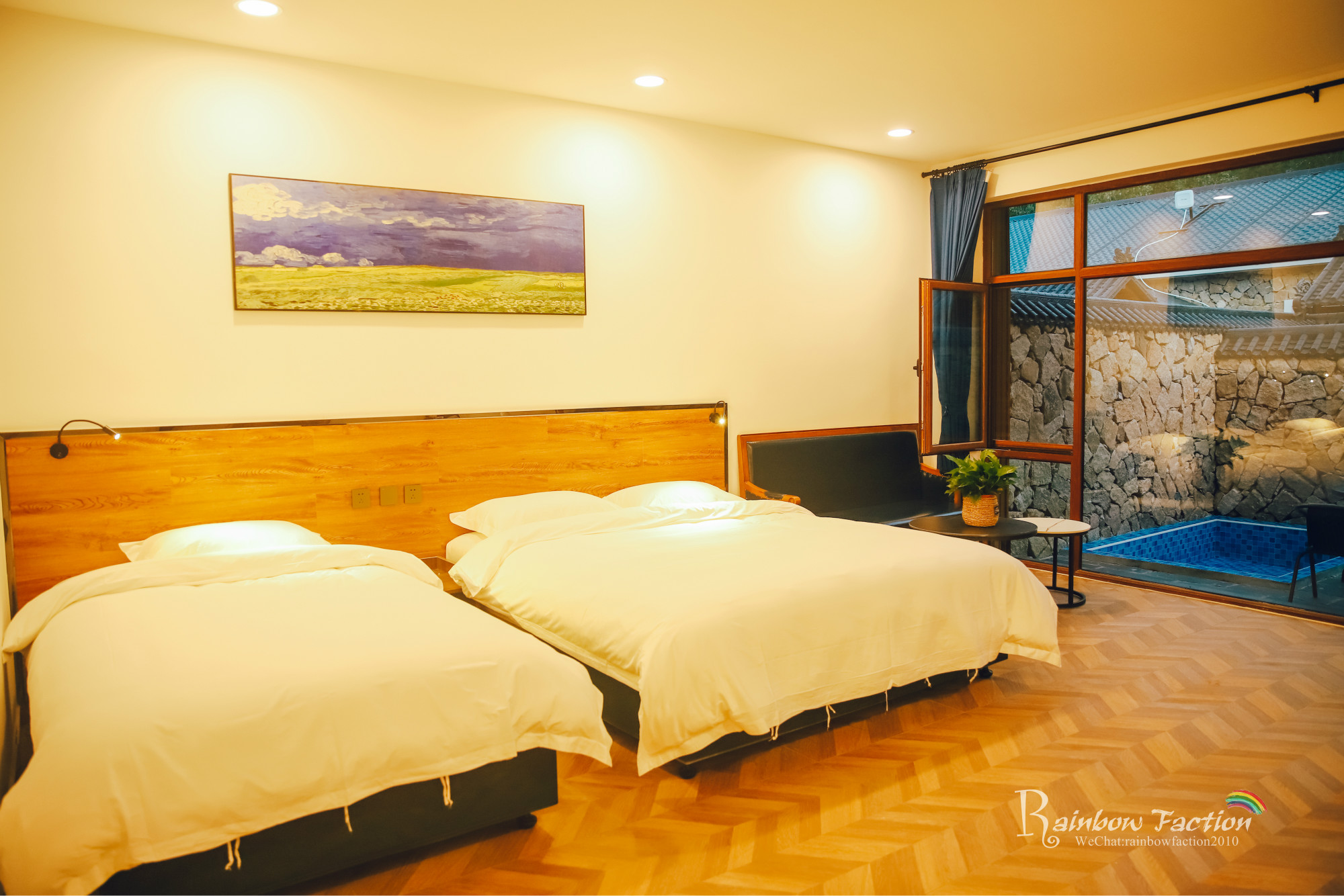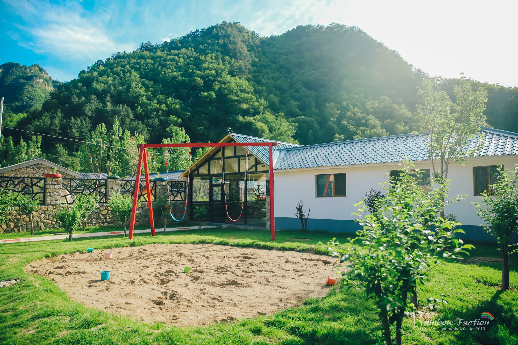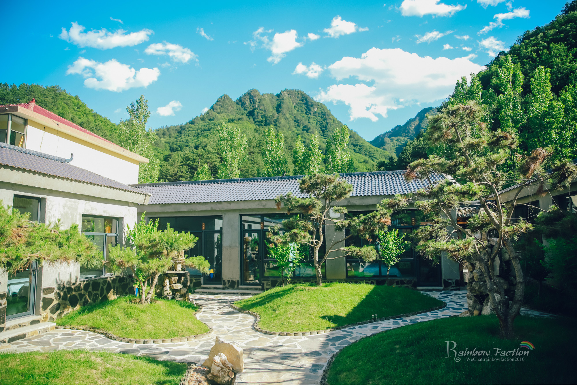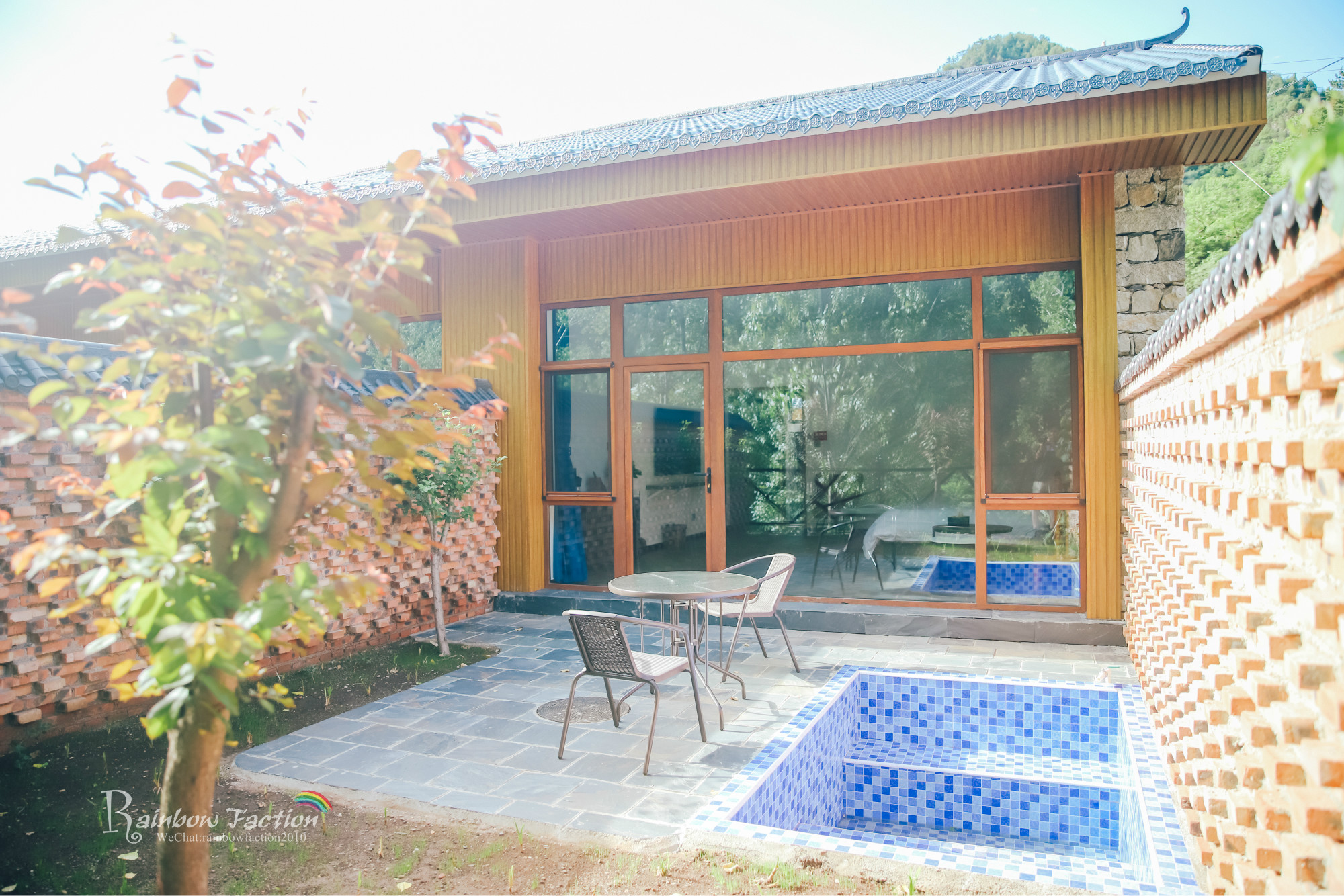 森林乡居兴隆寨共有两个院落。一号院有十间客房,背靠青山,大大的庭院里种满了绿植,最适合小朋友们奔跑嬉戏。