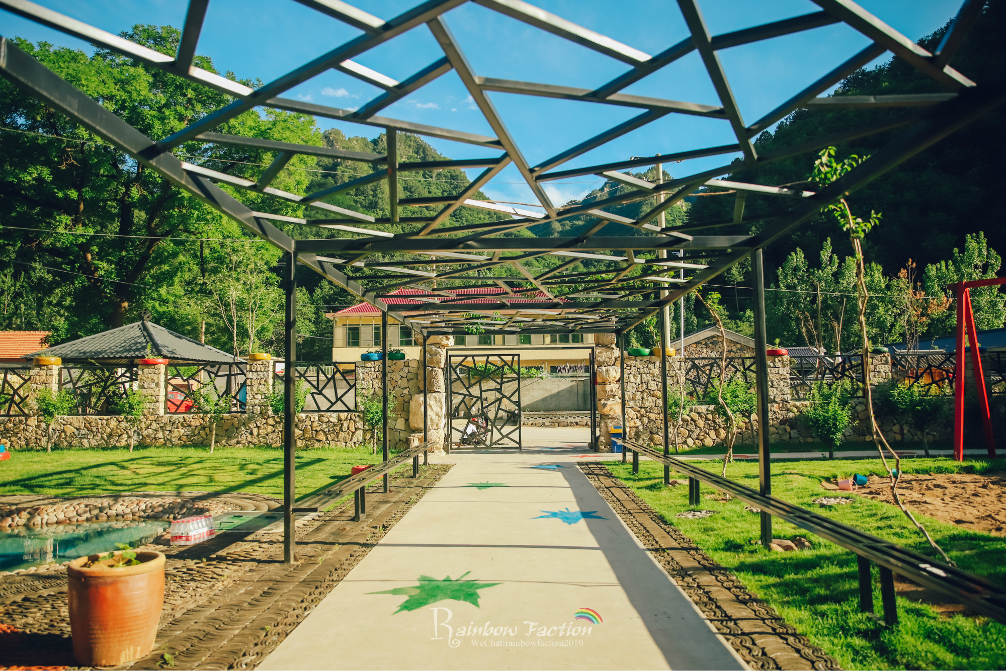在一号二号院的对面,还有一个综合配套中心,大大的庭院里泳池、滑梯、秋千,就像走进了一个游乐场。