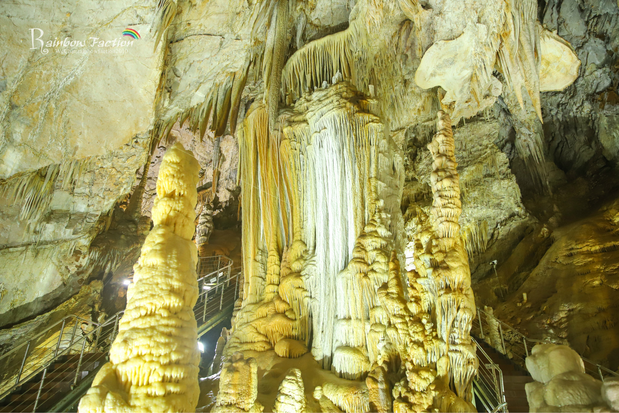 一千多米的观景步道,一路上见到了卷曲石花、结晶吊球,三方晶系的白玉石珊瑚、还有石钟乳,石笋、月奶石等众多特色溶洞景观,真是让我们大饱眼福!