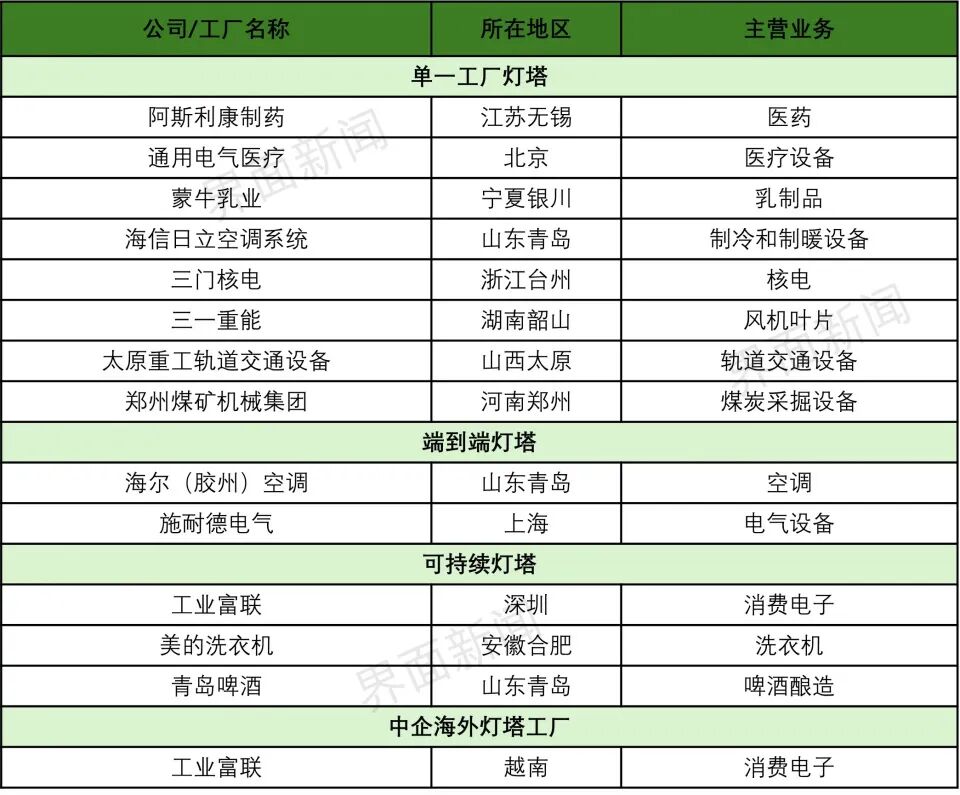 新晋灯塔名单:按企业英文名称首字母排序