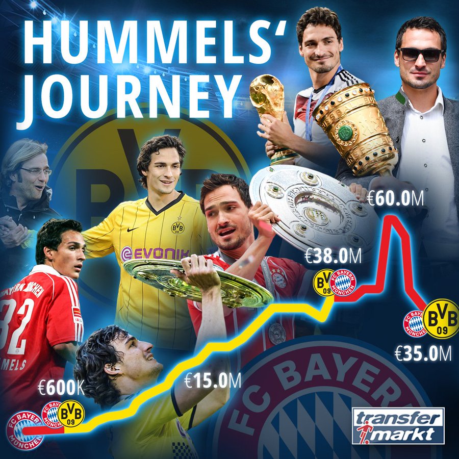 德国球员本赛季身价跌幅:胡梅尔斯穆勒等四人并列第一