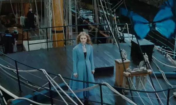 第一部末尾爱丽丝离开英国的时候穿了一件维多利亚风格收腰的长款风衣,现在看起来也很是时尚。