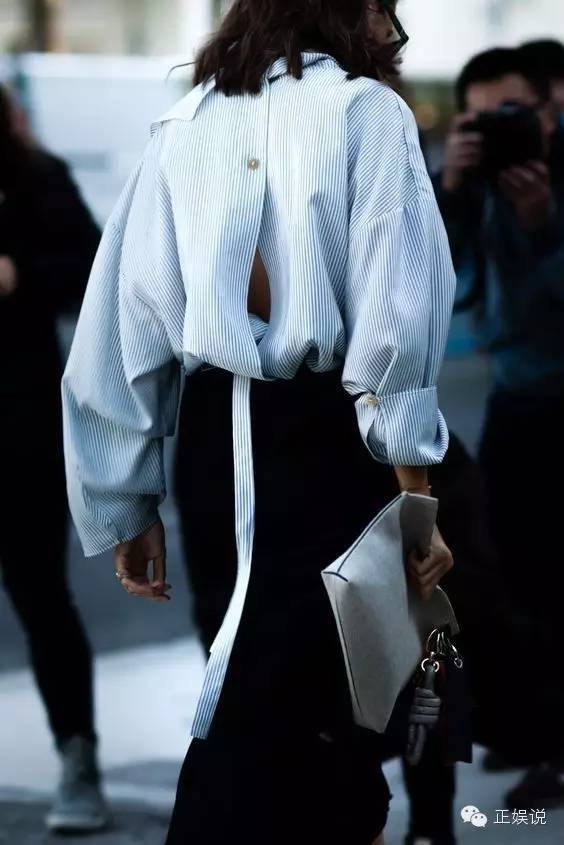 相比较两者流行趋势,大一号的衬衫更受大家的喜爱,不管是时尚博主还是明星都把大一号的衬衫秀出街!