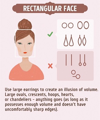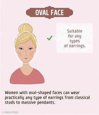这种脸型的人适合大体积的耳环,大的椭圆形的、新月型的、环形、心形、树叶型的。一切体积大但又不会让你感到不适的耳环都是适用的。