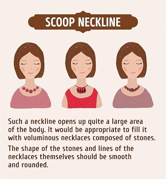 圆领的衣服会露出较多的皮肤,所以很适合用石头等饰品组成的大项链来填补。而这种饰品或者项链本身要求要光滑圆润。