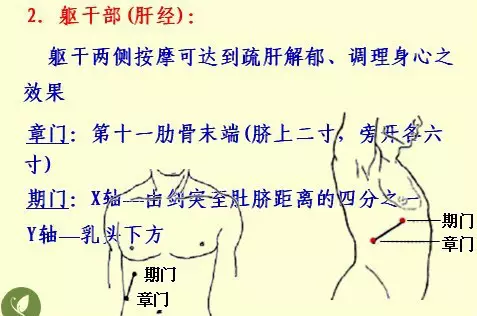 躯干部:章门、期门(肝经)