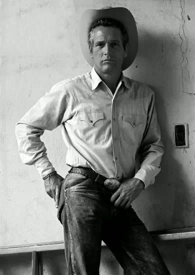 1972年,Paul Newman在拍摄现场,全身上下的牛仔装里牛仔腰带尤其显眼。