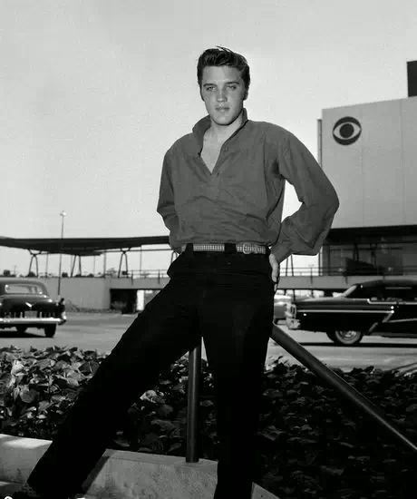 1956年,Elvis Presley一身轻松打扮搭配一条格纹帆布腰带,毫不费力地有型有款。