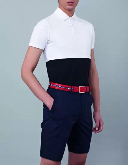 不同材质拼接的腰带有一种呼之欲出的休闲感,是百慕大短裤与棉质POLO的绝佳“伴侣”。