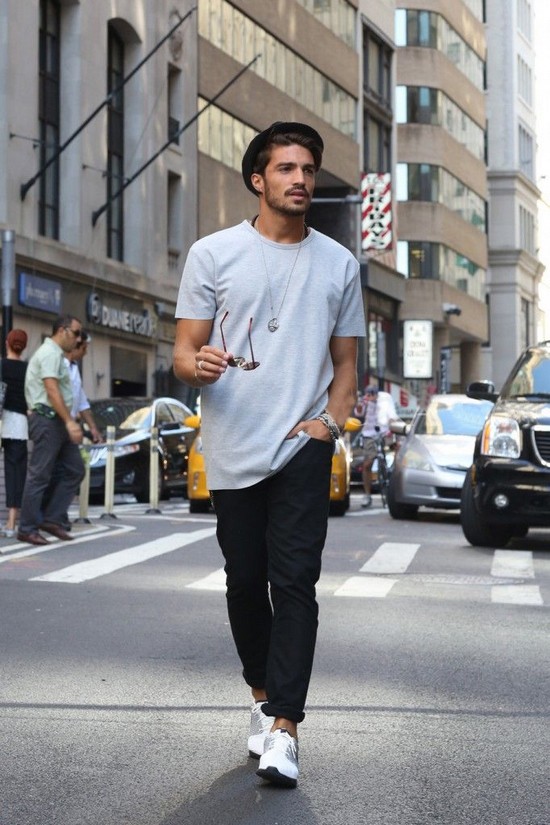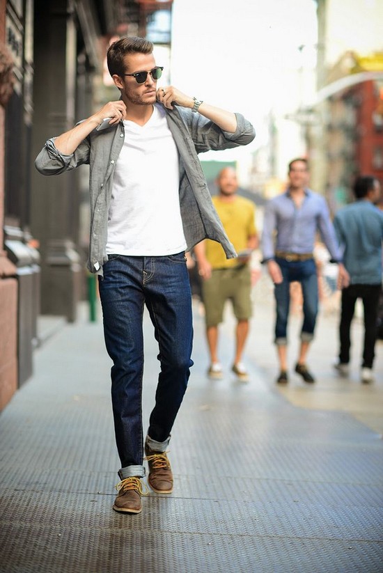 1、对于腿型相对较短的亚洲人,选择修身牛仔裤能在视觉上有效地提升大长腿的效果,让男人的魅力增值,而宽松和肥大的牛仔裤只会让你在矮矬穷的道路上越走越远。