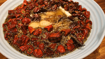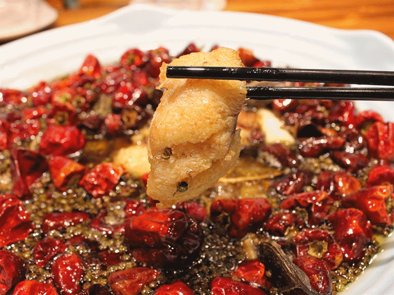 ▼老板介绍说,这是一种叫胭脂鱼做的,肉质很嫩,每一块都又麻又入味,丢不下筷子停不下嘴~