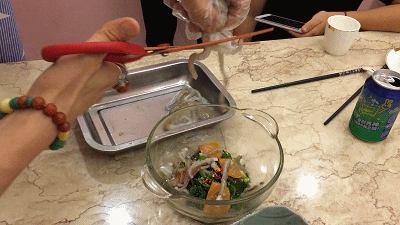 ▼其实一开始剪鲜活的八爪鱼时候,我内心是拒绝的,仿佛看到了痛死的罗志祥!