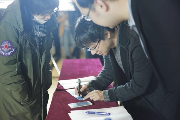 无论是在接受采访还是给人签名、合影,他都很有耐心,一如他的作品,总透着一股暖意。