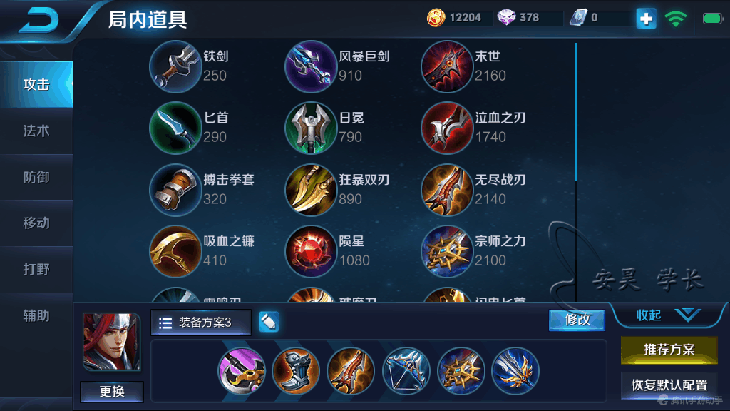 出装:肉打野刀、攻速鞋、无尽战刃、破甲弓、宗师之力、破军。