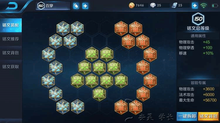 这是一套最合格的百穿铭文,很早大家就是这么搭配的,很多战士类英雄都适合这套铭文。