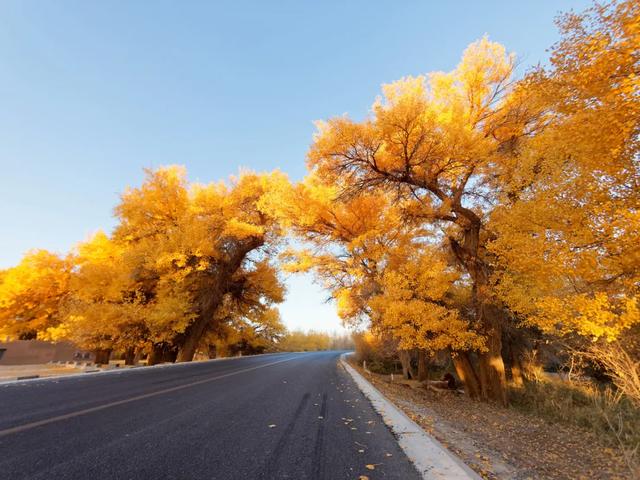 与沙漠深处不同,这里的胡杨,高大的同时又枝叶繁茂。