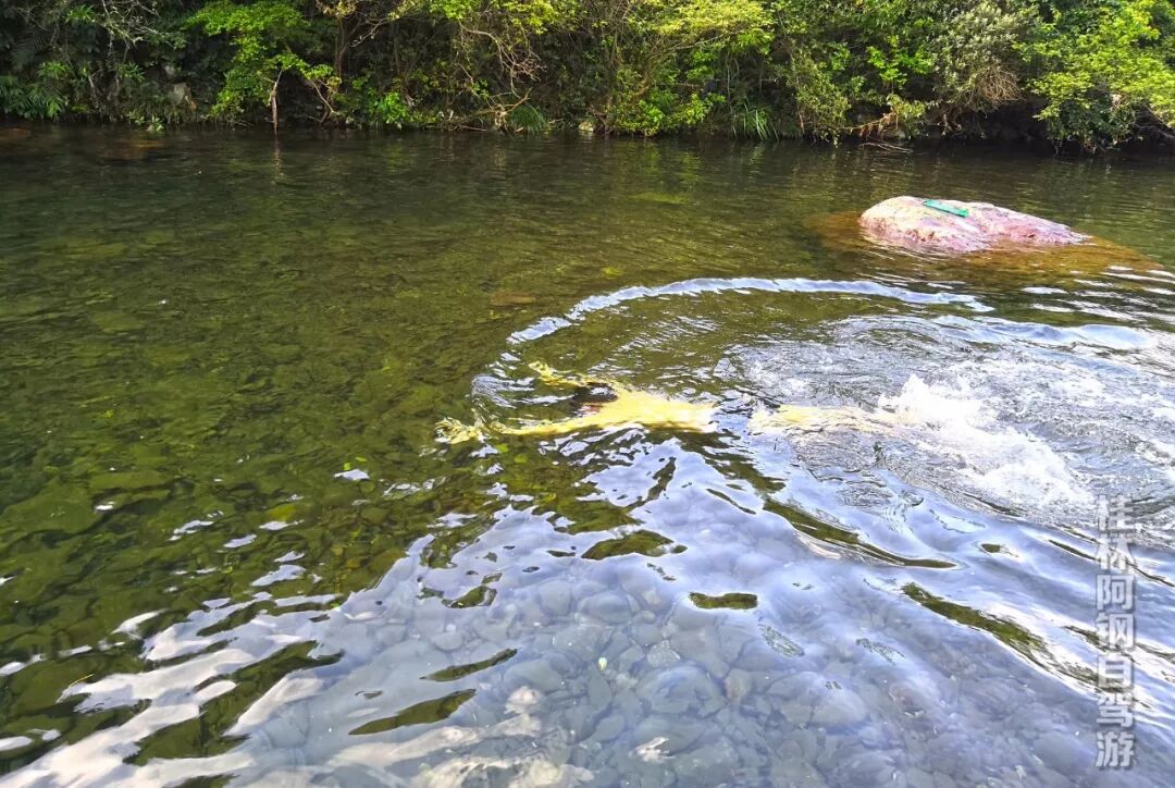 山泉水清新凉爽,还有点甜甜的,游泳的皮肤也是滑滑的。