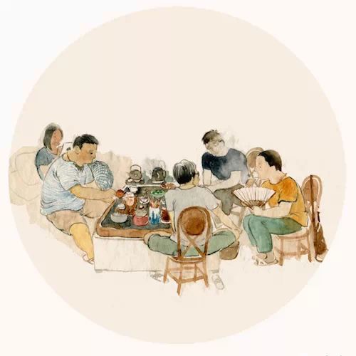 以下是小小画的一些有关喝茶的场景,有土土的,有风雅的,也有一群三八的...人