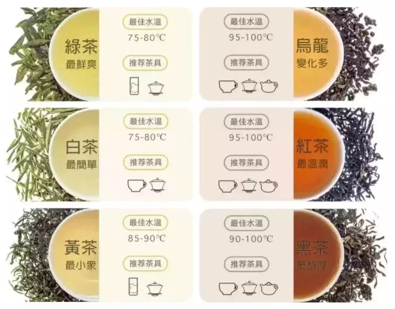 参照上面几张图,我们就可以大致归纳出六大茶类的主要特点和功效
