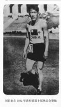 20世纪初外国传教士将现代田径运动带进中国,当时只有在教会创办的学校之间开展田径比赛,http://p7.qhmsg.com/dr/220__/t01b7726a6ba2234517.jpg刘长春在第十届奥运会赛场后来逐渐普及到全国的国立、私立学校。1932年中国首次参加第10届洛杉矶奥运会。当时中国短跑运动员刘长春已具备了世界水平,但由于经费不足,他经过长途跋涉,到达洛杉矶的第3天就参加100米预赛,仅以11秒1的成绩名列小组第5名,未能进入下一轮比赛。在200米比赛中,刘长春跑出了22秒1的好成绩,虽获小组第4名,也未能进入复赛。比赛结束后刘长春没有回国的路费,在当地华侨的捐助下才得以返回祖国。