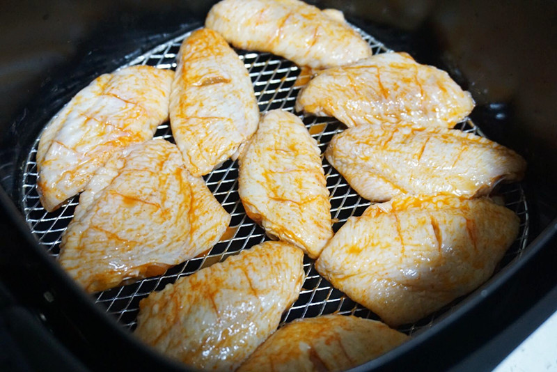 不过不管哪种家电,都需要在中途翻面,大概3-4分钟就翻面一次,否则鸡翅两面的色差很大的。