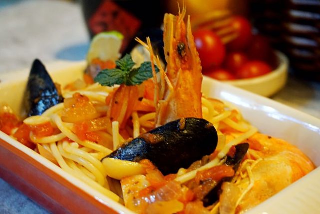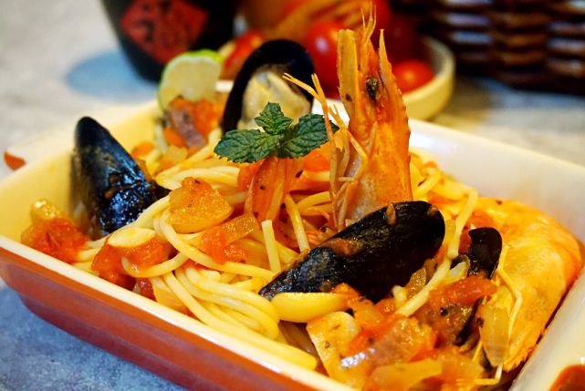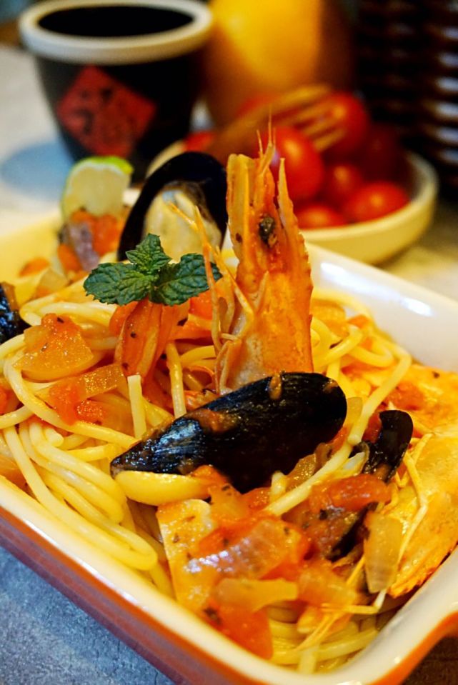 这道青口贝鲜虾番茄意面,热量低,口感鲜,口味上不属于一盆红烧肉或者一碗卤肉饭,但热量真是低多了。想做个瘦身妹子,就从这碗面开始吧。