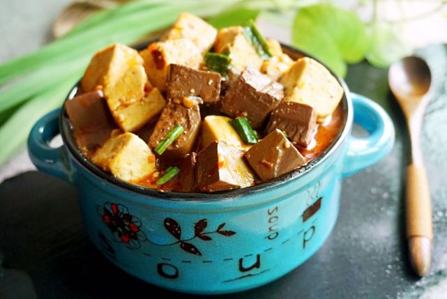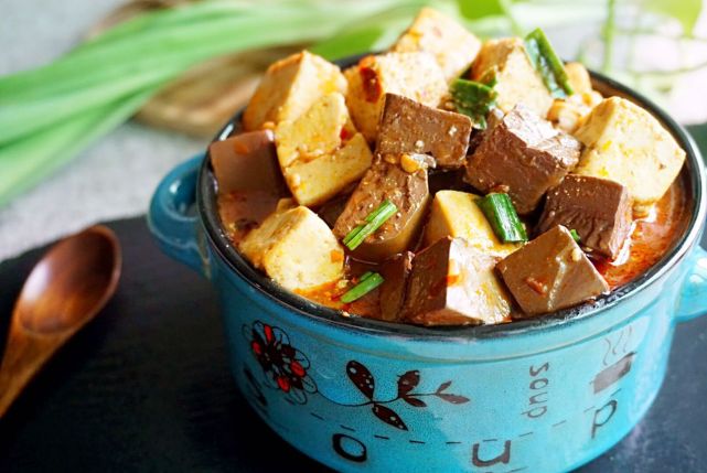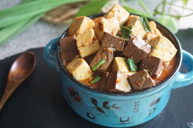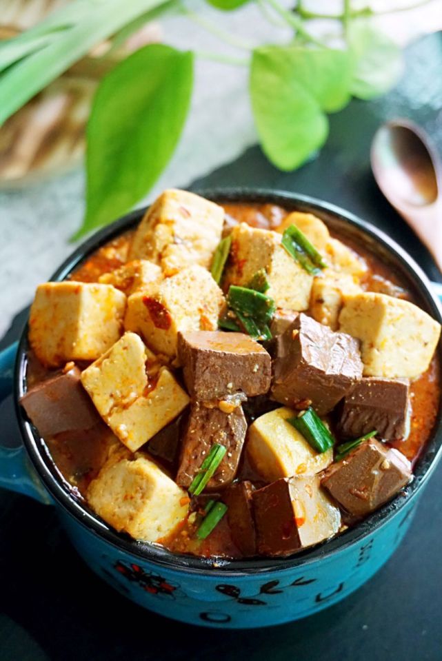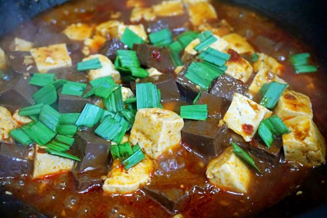 5、好吧,如果你能接受鸭血的味道,喜欢这种营养丰富的食材,一定试试这道食谱。不喜欢的,您放北豆腐直接做成麻婆豆腐即可哦。