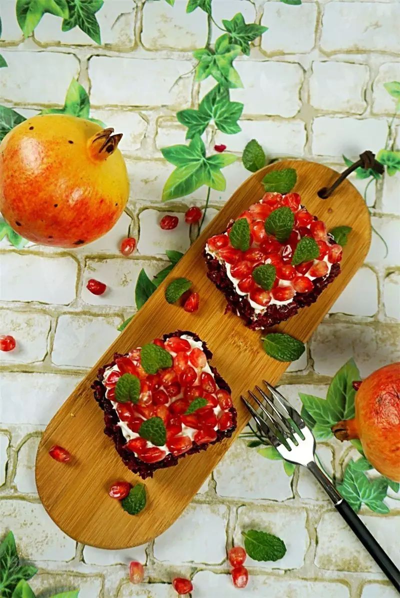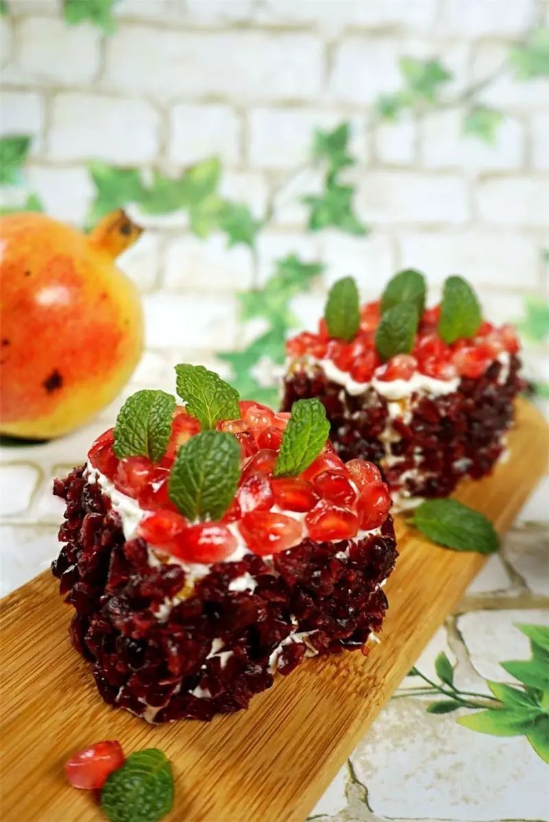 天冷后总想吃甜食,这拒绝了一个夏天的淡奶油,现在拿出来做些小蛋糕,确实蛮合适的。于是,鼓捣了一晚上,做了4块蔓越莓奶酪石榴方塔。
