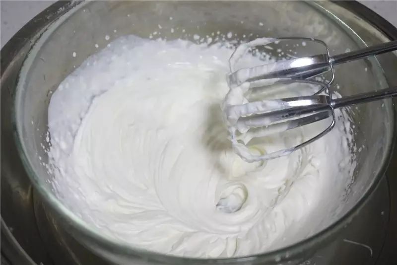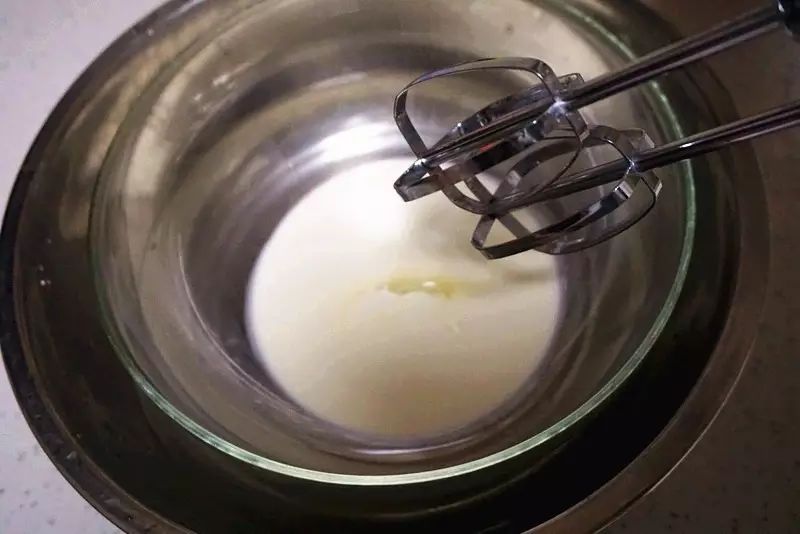 6、把炸好的土司块放凉,要凉透,不然包裹淡奶油就融化了。这时候开始打发淡奶油,奶油和糖是10:1的比例。