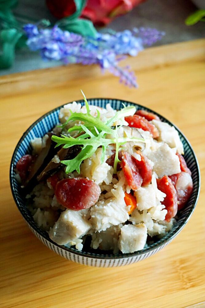 8、北方人初次吃这芋头饭,会有很惊艳的感觉,蒸的松软细腻的芋头块,混杂在香菇和香肠中,它抢不了其他食材的美味,却也傲然的凸显它的存在。以至于你下次蒸饭,可能会换成香芹,改用腊肉,但仍然会加一小把芋头块进去。