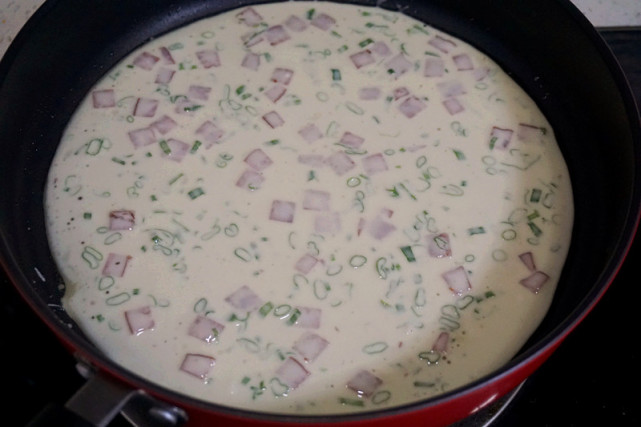 5分钟的时间,就是这么短的洗漱时间,就能做出一盘松软美味的培根鸡蛋饼。