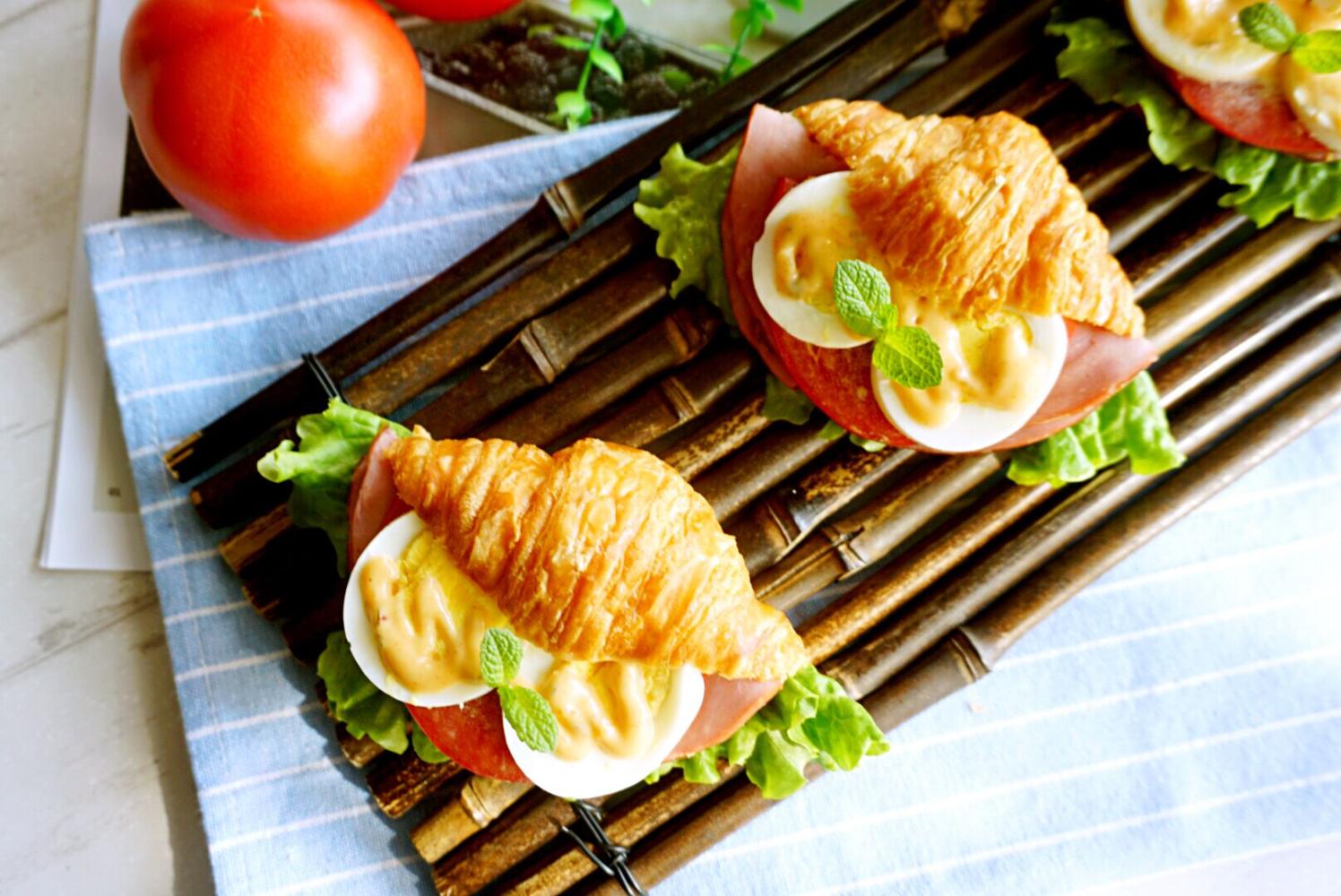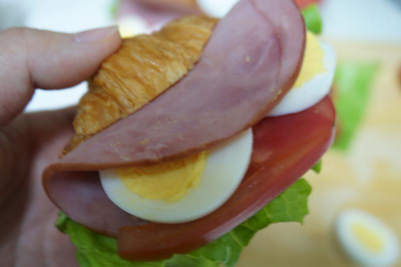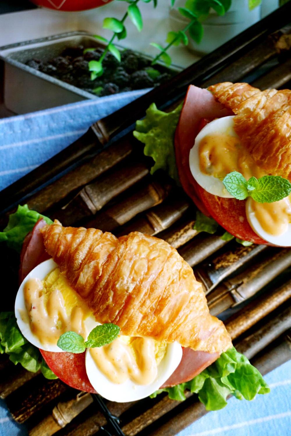 这种用可爱的小牛角面包,来做三明治,是蛮可爱的一种做法,尤为讨喜小孩子,因为这种起酥面包特别香酥,不同于吐司,所以做出来的三明治别具风味。