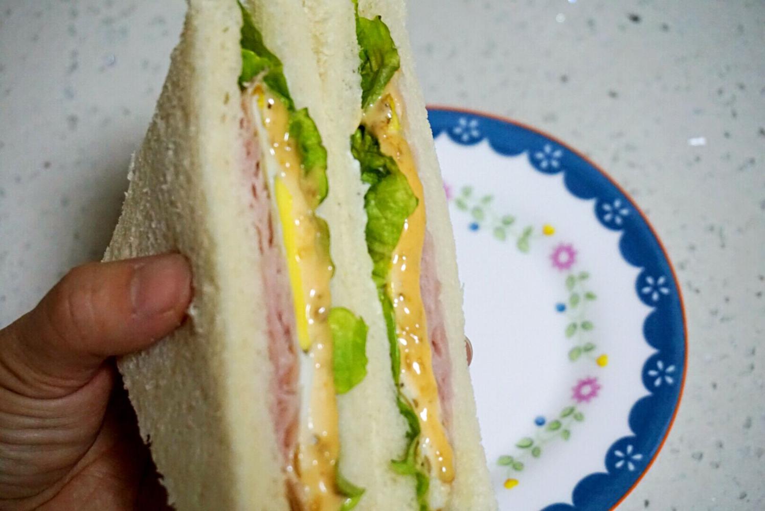 这是最常见的三明治的做法,切成三角形状,可直接用原味吐司夹或者蘸满蛋液小火煎。我和家人很喜欢在这种三明治里加入自家腌制的酸黄瓜,比生菜叶、番茄片什么的好吃很多,或者更简单的法子就是放入买来的辣白菜。