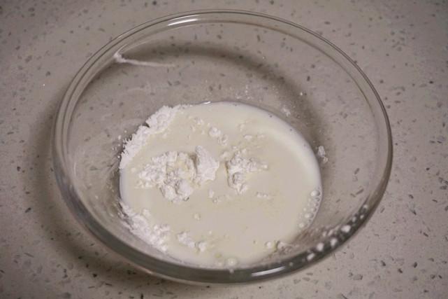 3、剩余的50毫升牛奶和35克的玉米淀粉混合,搅拌均匀。