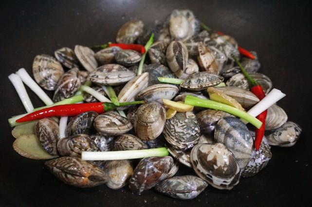 2、新鲜肥美的贝类,最鲜的做法就是酒煮,白酒、梅酒、葡萄酒、米酒,都可以用来煮,我是用3大勺的米酒来煮,口感甘甜。