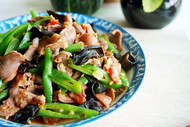 作为北京人,花儿属于不太能吃辣的那一类。刚进入五月,尝试了几次小米椒,这辣适应了好一阵,一两根的量放菜里还可以,慢慢竟然也习惯了这种鲜辣的味道。这次拼了,用泡椒和杭椒的鲜辣来挑战味蕾,二者结合,爆炒鸡胗最香了。虽然吃的鼻涕眼泪的,但出透了汗,确实对得起这道菜了。