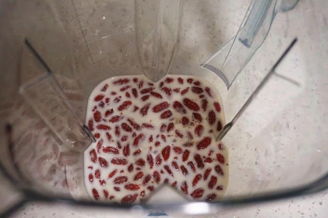 3、把枸杞和剩余的牛奶混合,用料理机打成浆状,尽可能细腻一些。