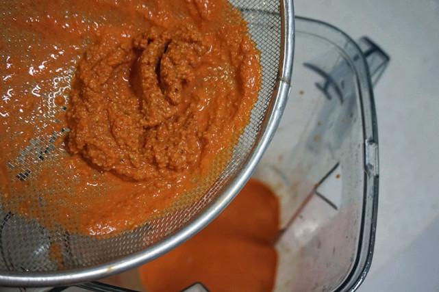 4、为了口感更好一些,打好的枸杞浆,我们过一下筛。