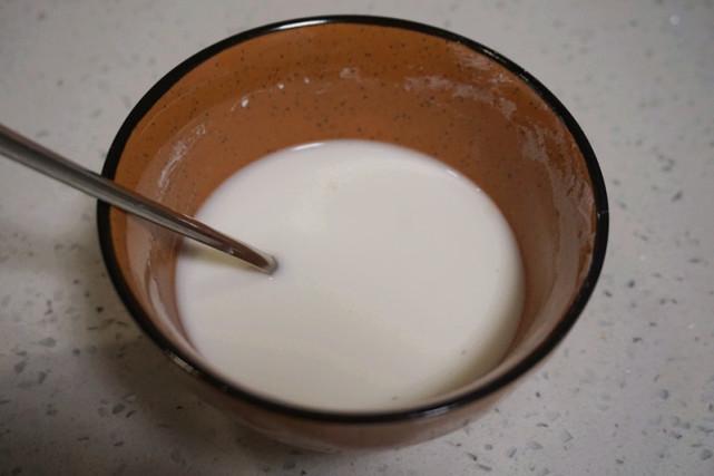 2、淀粉用250克中50克的牛奶拌匀开来,白糖准备30克。