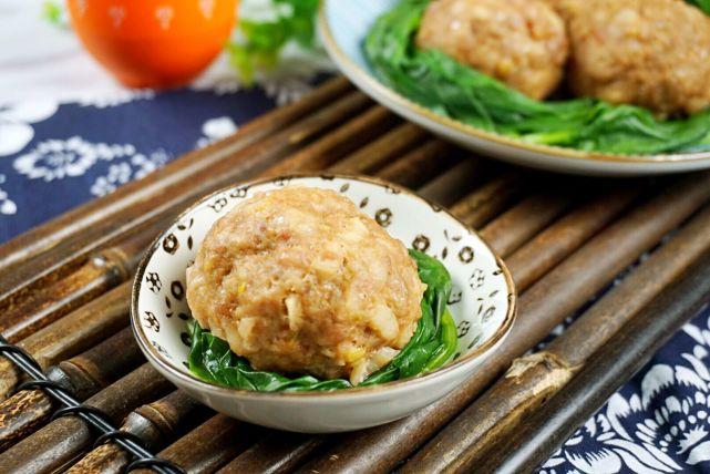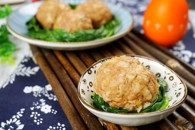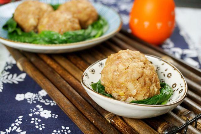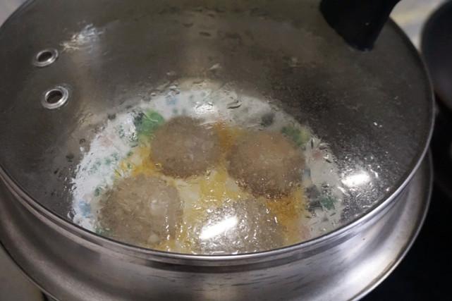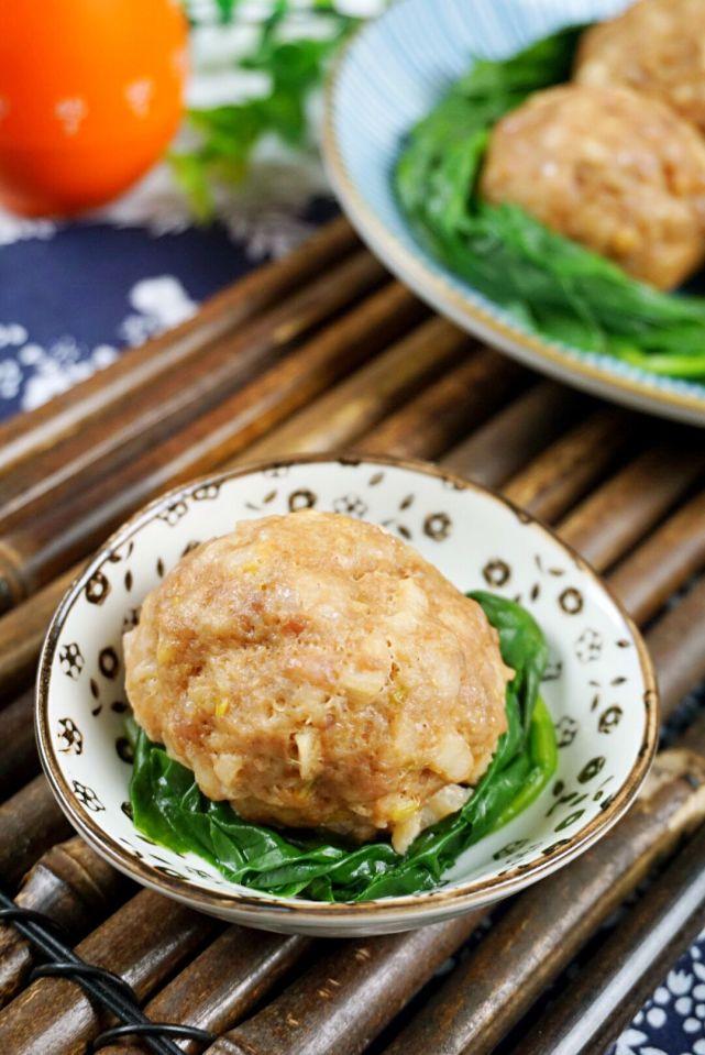 7、入蒸锅,上汽后蒸20分钟。清蒸的同时,逼出的油水汤汁,使得肉丸本身的油腻感少了许多,也更健康。