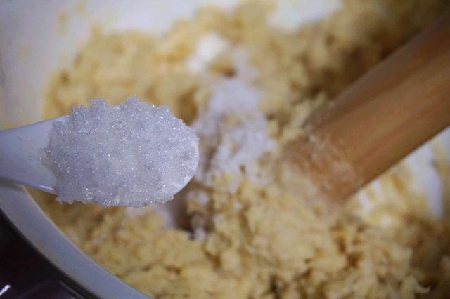 5、倒入白糖搅拌均匀。