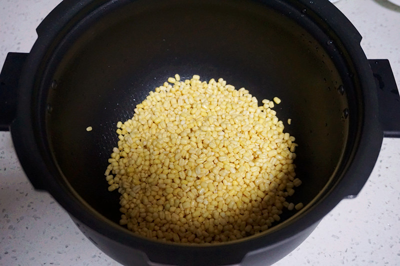 接着放入电压力锅,水量是绿豆的一半,也就是130克左右,煮半小时。