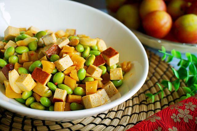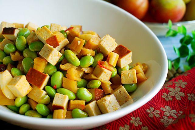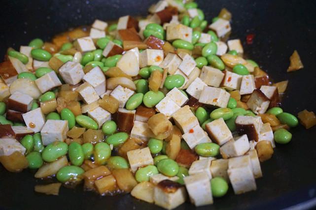这道萝卜干毛豆炒熏干,就是很适宜老人和孩子食用的,养生效果好,开胃又香脆。