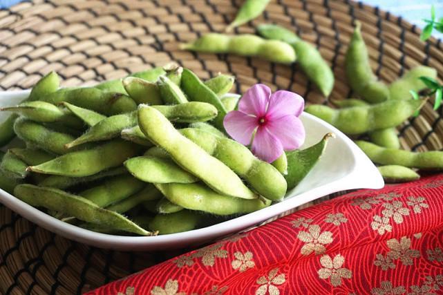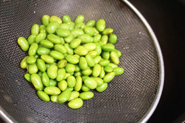 毛豆洗净后入沸水焯3分钟,捞出备用。