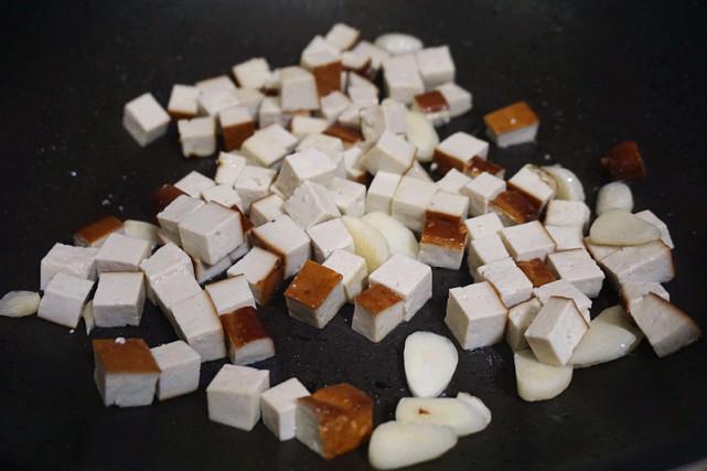 3、这道菜用蒜片爆香,比用葱姜末好吃的多,试试看就知道喽!
